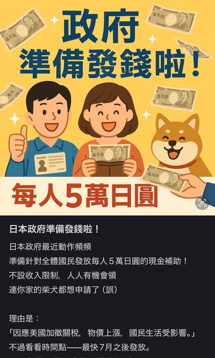 「日本政府はお金を配る準備をしている!」とこんな絵まで作って拡散されている