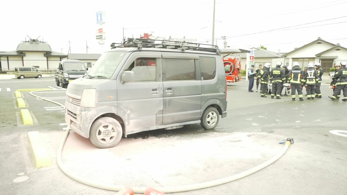 エンジンをかけたまま駐車中の軽ライトバンが燃える車両火災が発生しました。