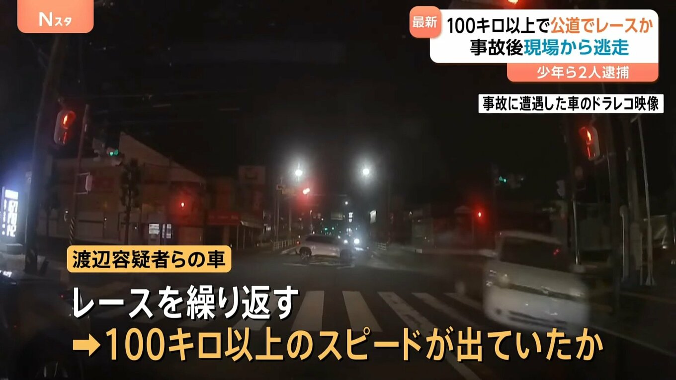 少年は当時、別の車とレースをしていたとみられ、警察はこの少年とともに逃走していた別の車の運転手・渡辺慈英容疑者(20)も逮捕しました。
