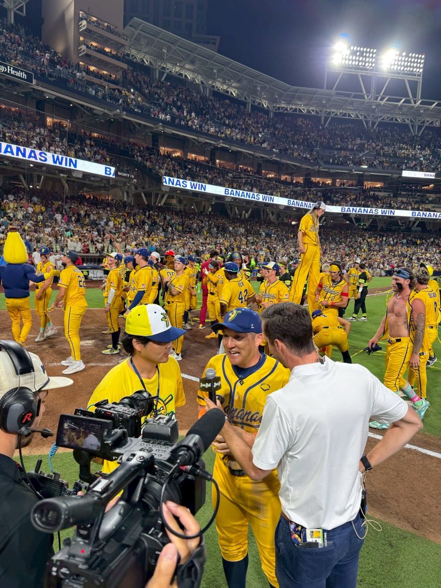 いざ試合が始まると、普通の野球とひと味違うのは一目瞭然だ。プレーしているのは独自の11のルールを導入した「バナナボール」。野球は試合時間の長さや間延びした展開がファン離れの一因になっているとされ、オーナーのジェシー・コールさんが「ファンにとって退屈な部分を全て取り除く」と考案した。