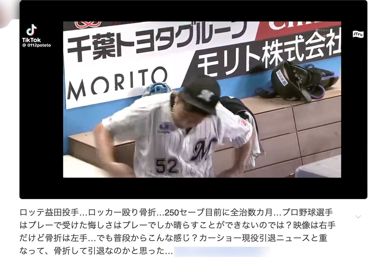 千葉ロッテマリーンズの右腕・益田直也投手(35)が左手骨折の怪我を負い、今シーズンの一軍復帰は絶望的となる見通しだ。