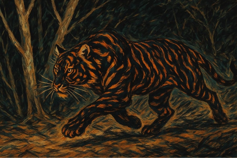 このブラックタイガーは、インド東部オディシャ州の「シミリパル・タイガー保護区」にのみ生息する、他に類を見ない特別な存在です。