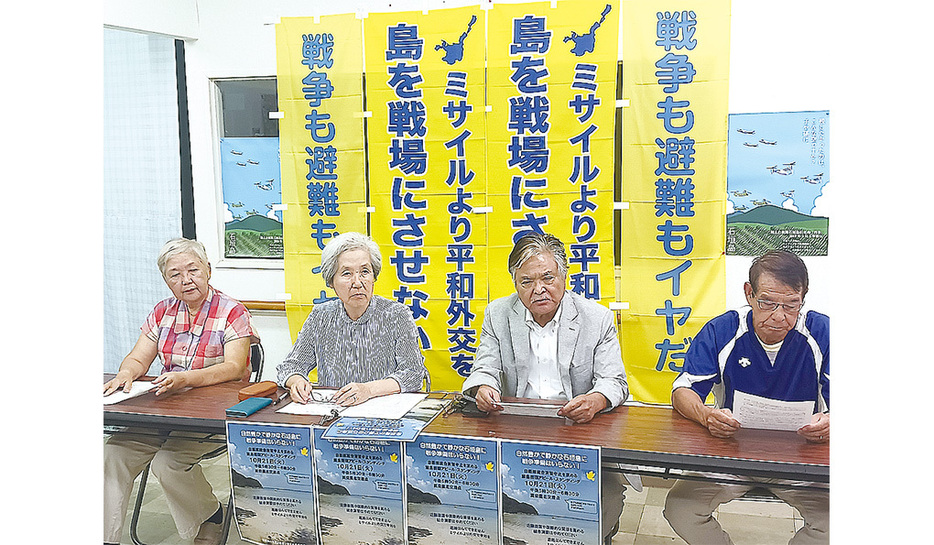 石垣島の平和と自然を守る市民連絡会(上原秀政、白玉敬子共同代表)の役員らが14日、市内の事務所で記者会見し、20日から全国各地で始まる自衛隊統合演習の中止を求める声明を出した。 自衛隊統合演習