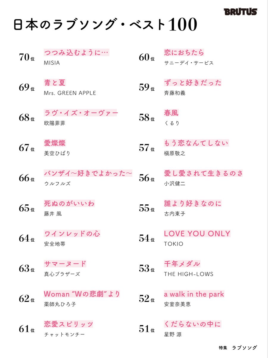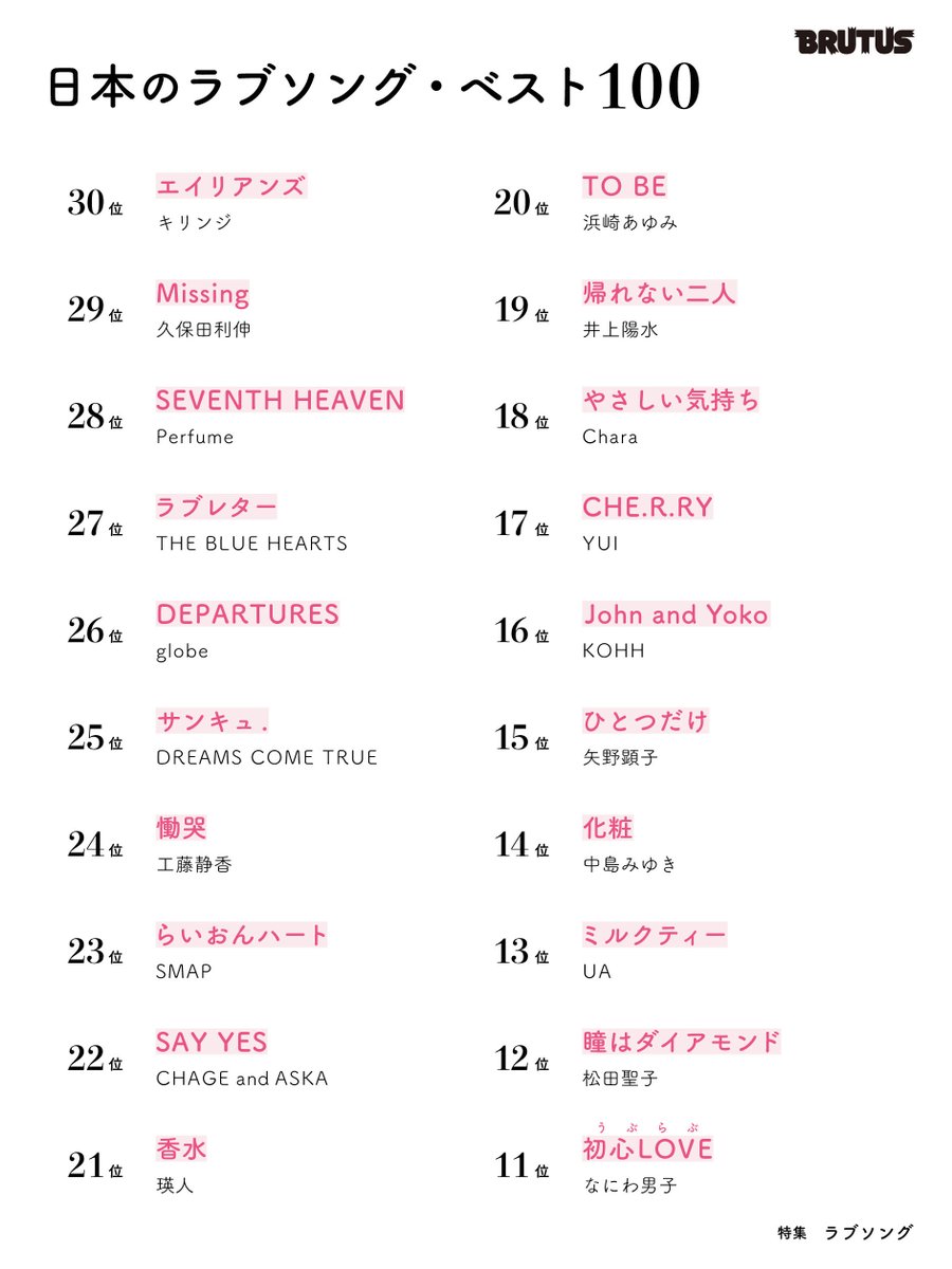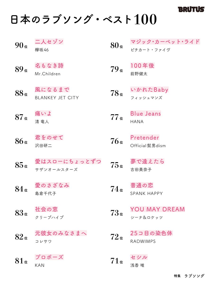 #BRUTUSラブソング100 (>>51位以下は省略。)