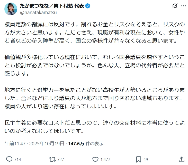 1: 尺アジ ★ 2025/10/14(火) 01:53:01.52 ID:R/3ck5ca9 10月9日放送の『報道ステーション』(テレビ朝日系)で、大越健介キャスターの高市早苗新総裁への態度が物議を醸している。 苦 […]