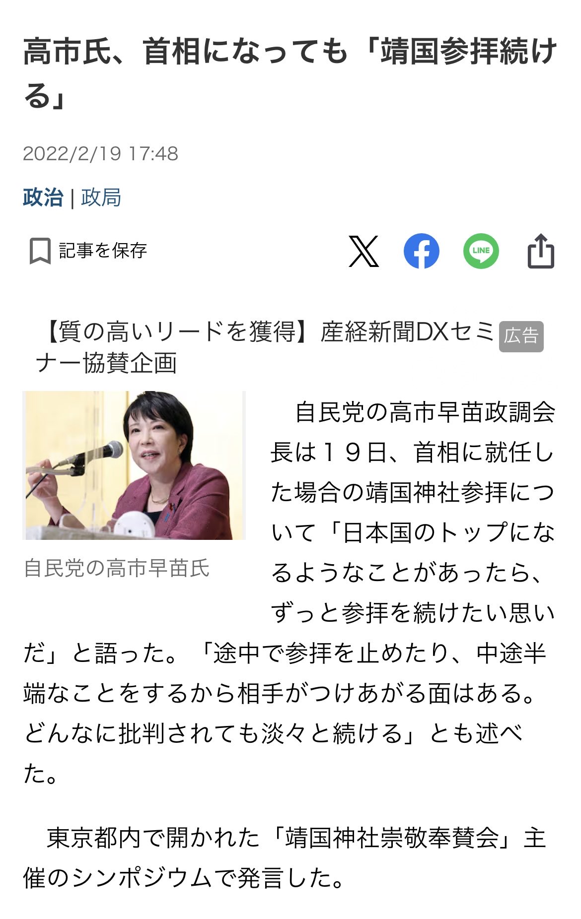 引用元: ・「靖国絶対参拝」「国の品格に関わる」が総裁になった途端「中韓に配慮します」真逆になった高市早苗に不信 [828293379]
