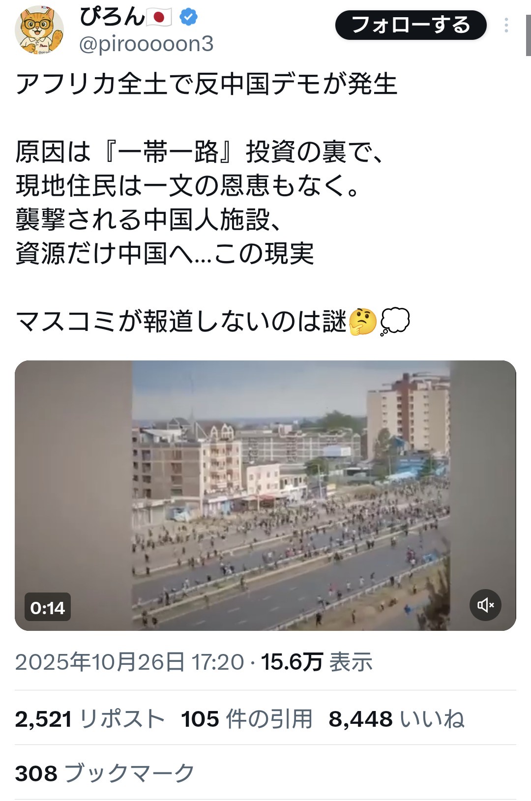 引用元: ・アフリカ全土で反中国デモが発生してる件 [662593167]