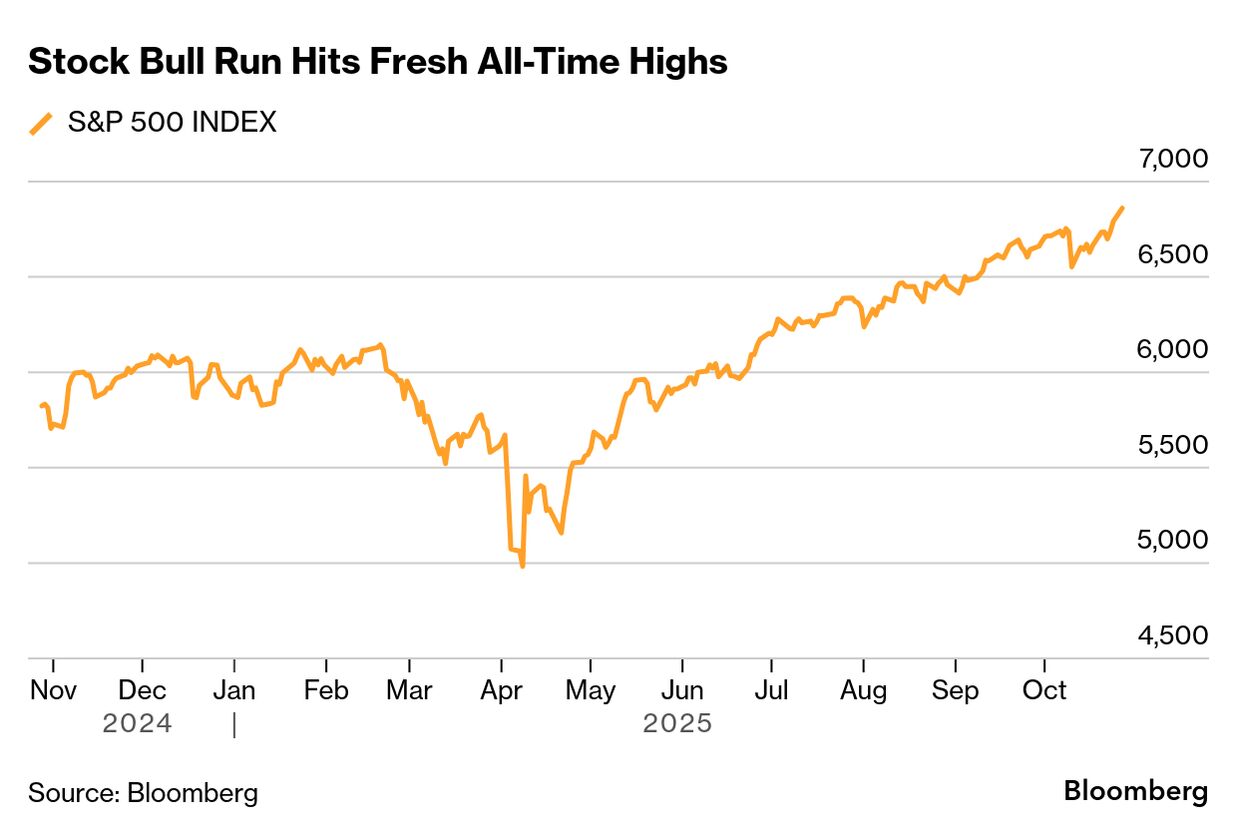 多くの機関投資家が運用指標とするS&P500種株価指数は3日続伸した。終値は前週末比83.47ポイント(1.22%)高の6875.16となり、2営業日連続で最高値を更新した。