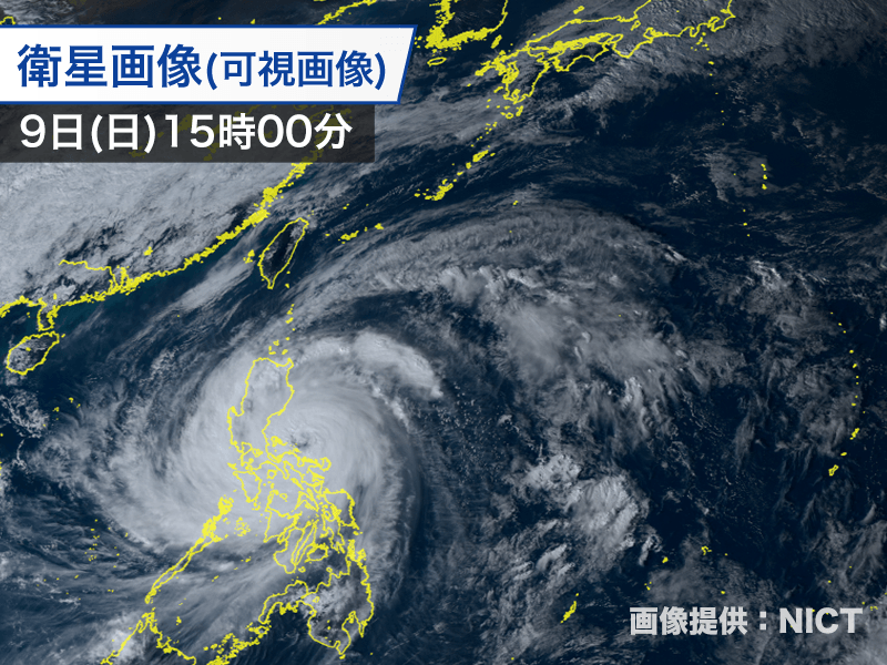 11月9日(日)15時現在、大型で非常に強い台風26号(フォンウォン)はフィリピンの東を西進しています。今夜から明朝にかけてフィリピンに接近・上陸する見通しです。