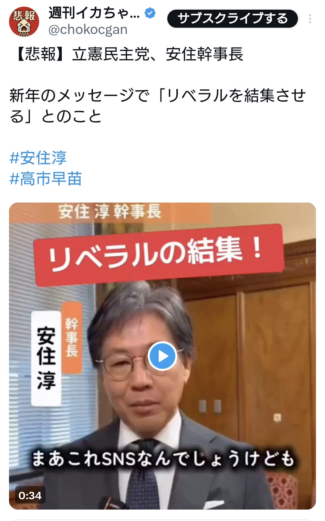 引用元: ・立憲・安住氏の新年のメッセージ「リベラルを結集させる」 [662593167]