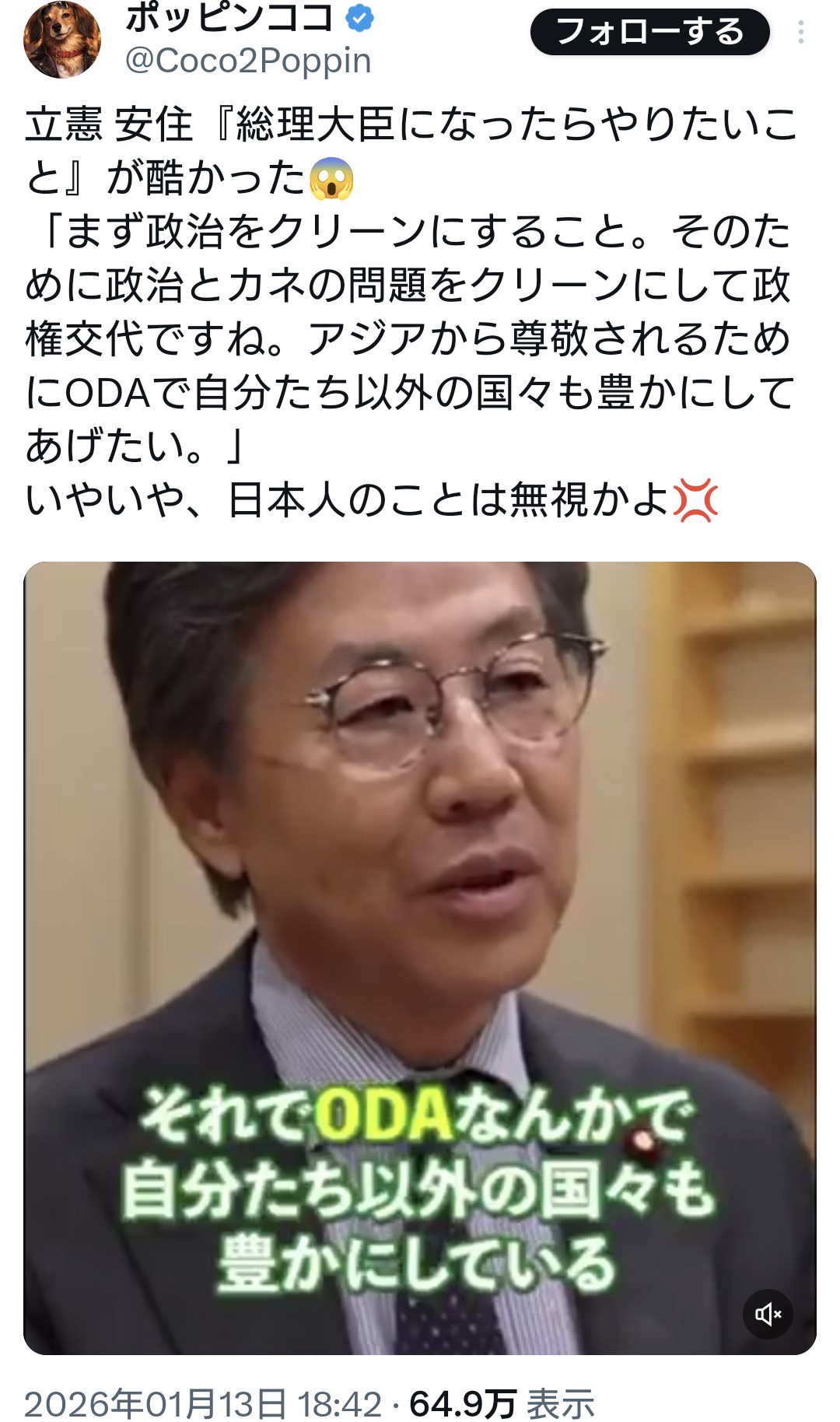 立憲・安住氏、総理大臣になったらやりたい事→「ODAで自分たち以外の国々も豊かにしてあげたい」