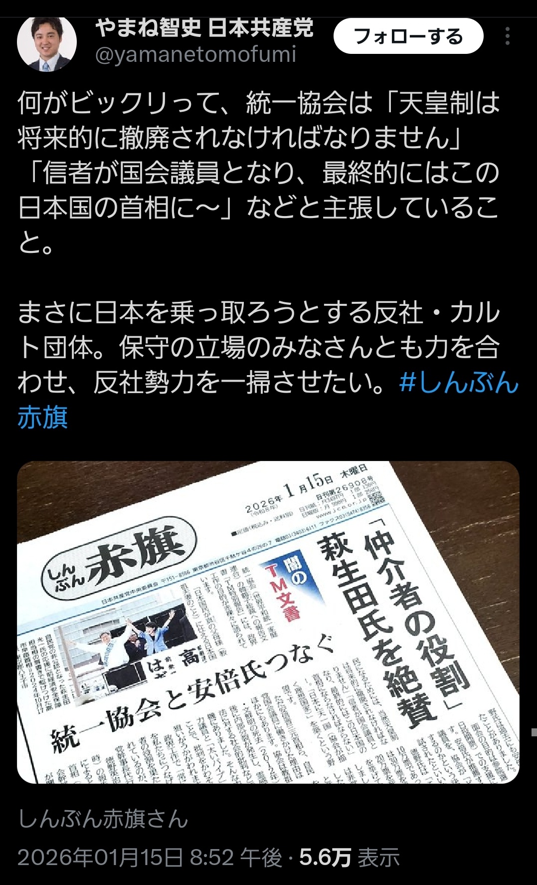 引用元: ・統一教会「天皇制を廃止し、統一教会信者を総理大臣にしろ!!」🤪 [732289945]