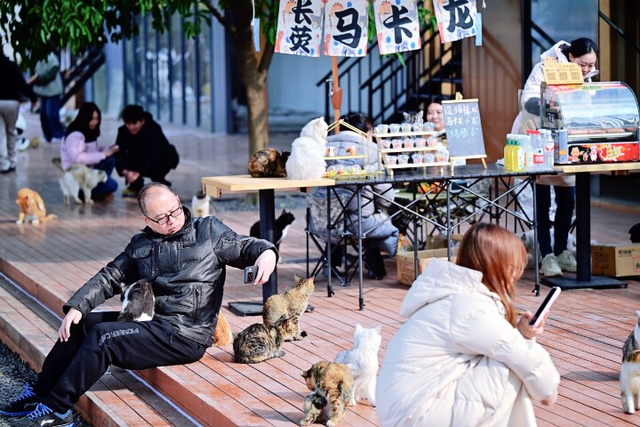 中国重慶市にこのほどオープンしたネコのテーマパーク「蛍火虫港湾猫猫主題楽園」の風景を、広栄(グアン・ロン)がカメラに収めた。