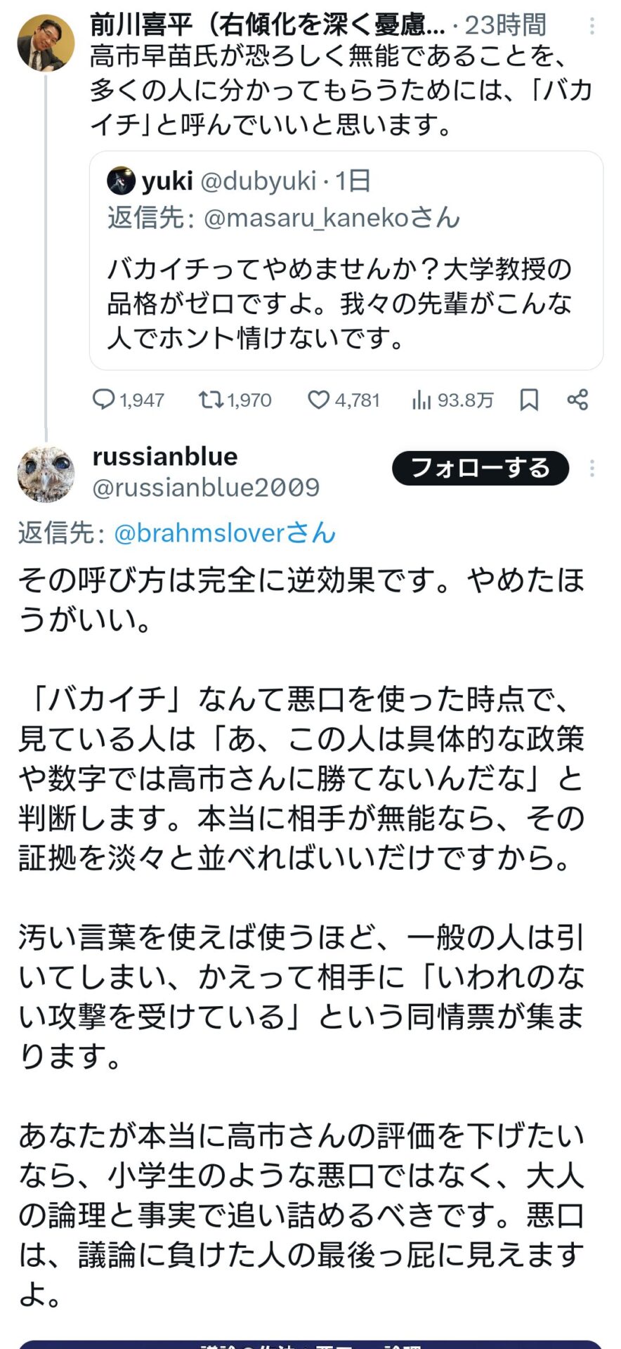 引用元: ・前川喜平氏「高市早苗氏は恐ろしく無能であるため"バカイチ"と呼んでいいと思います」 [662593167]