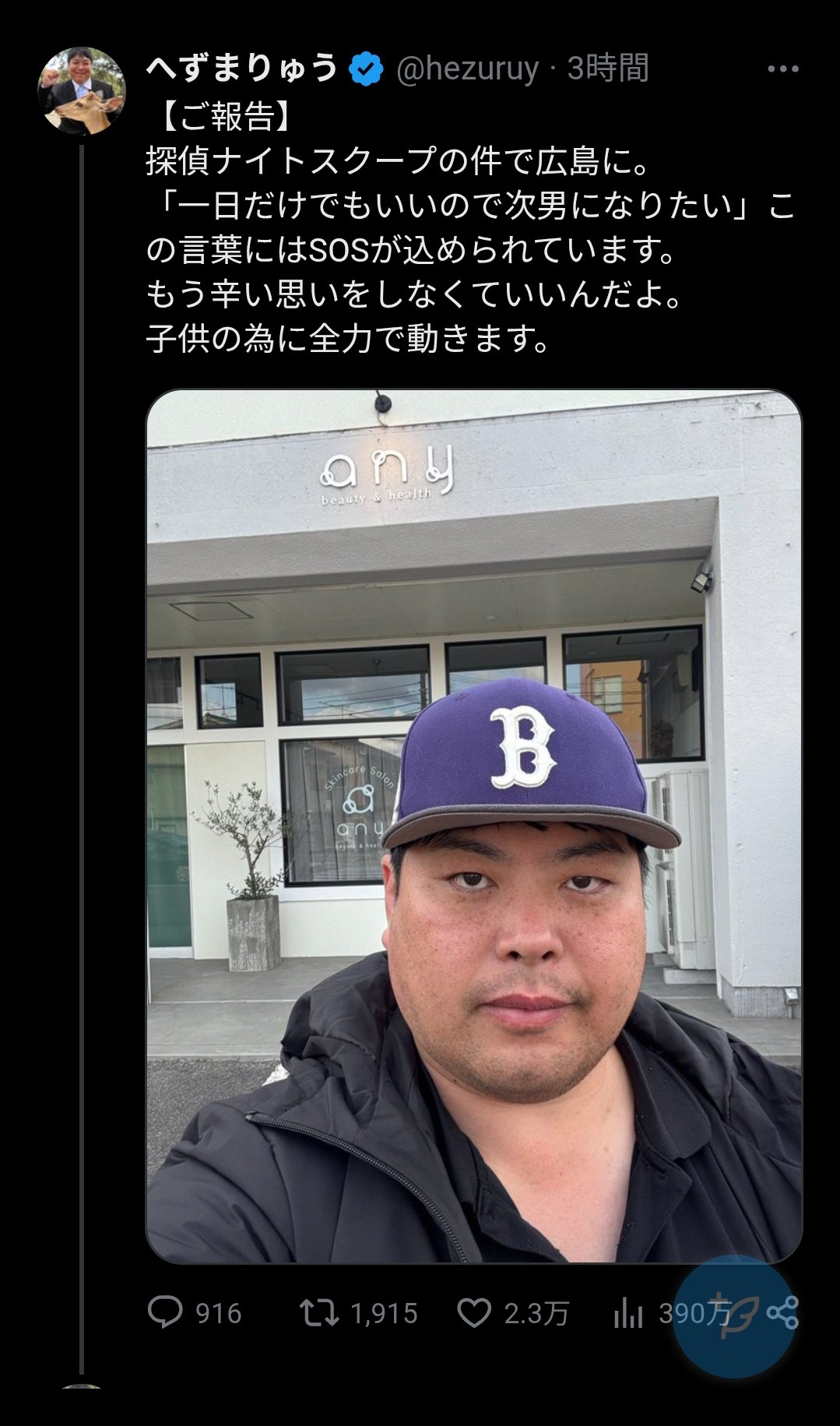 引用元: ・【悲報】へず◯りゅう、探偵ナイトスクープで炎上した家族の長男を救うために広島に到着 [928380653]