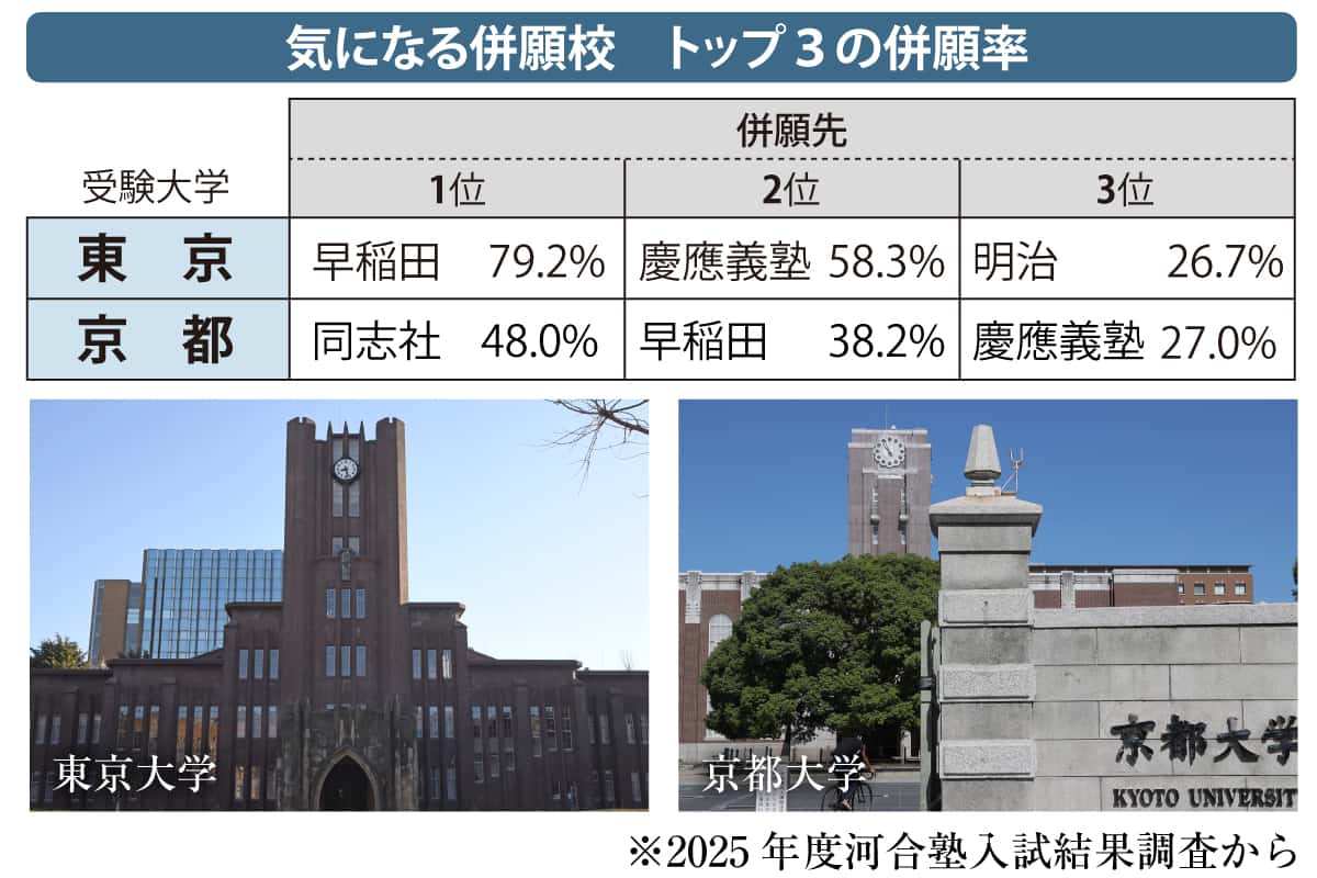 【大学入試】「東京大」の併願先は一位早稲田大、二位慶応大、三位明治大 「京都大」の併願先は同志社大が人気