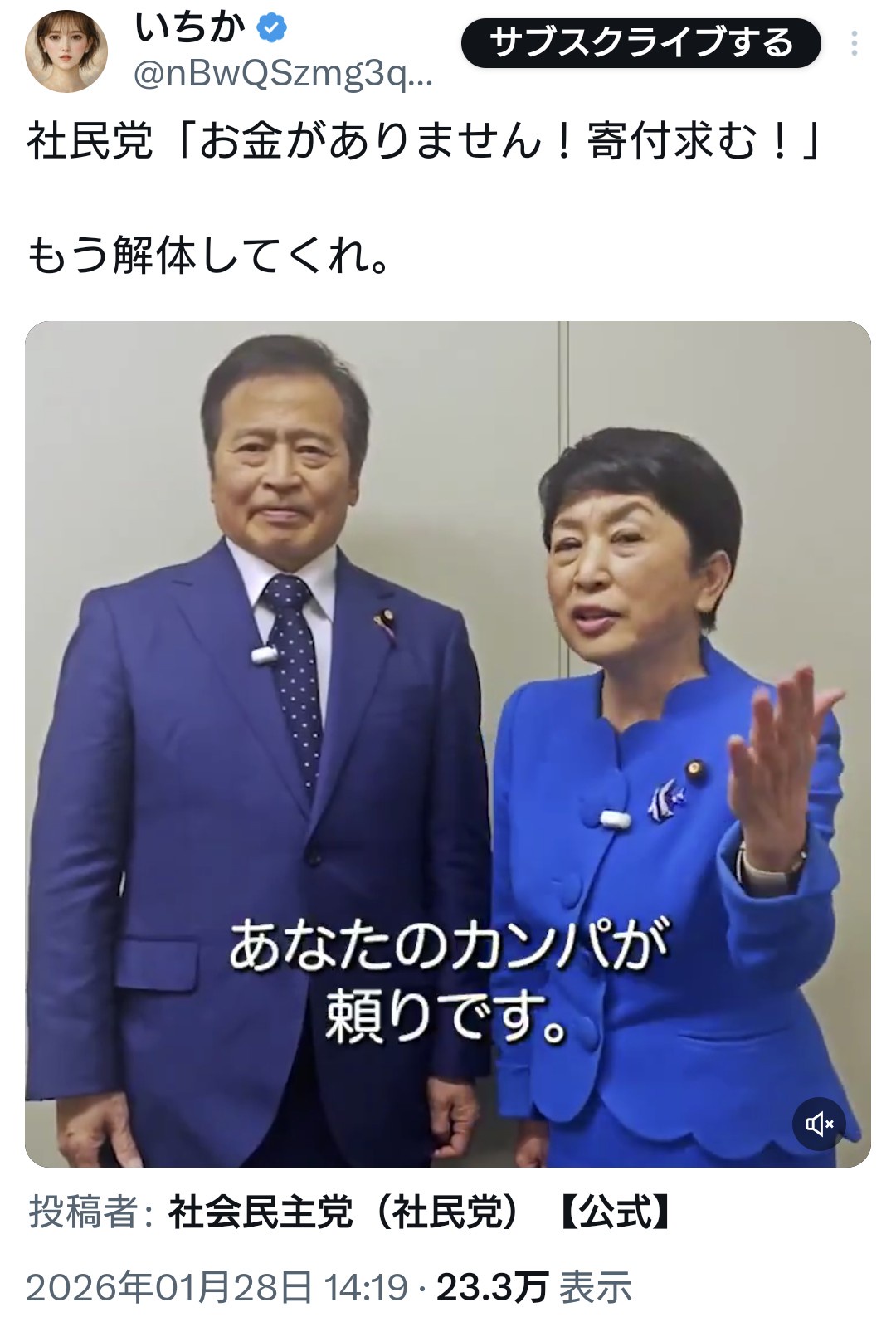 引用元: ・社民党「お金がありません!寄付求む!」 [662593167]
