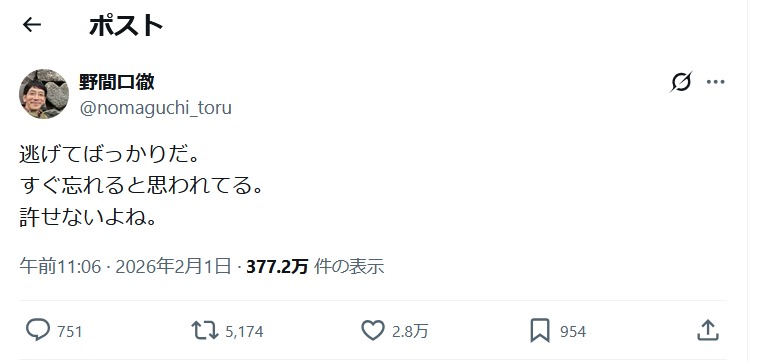 1: それでも動く名無し 2026/02/01(日) 19:16:16.12 ID:ERgga0q70 https://twitter.com/nomaguchi_toru/status/2017781548708495 […]
