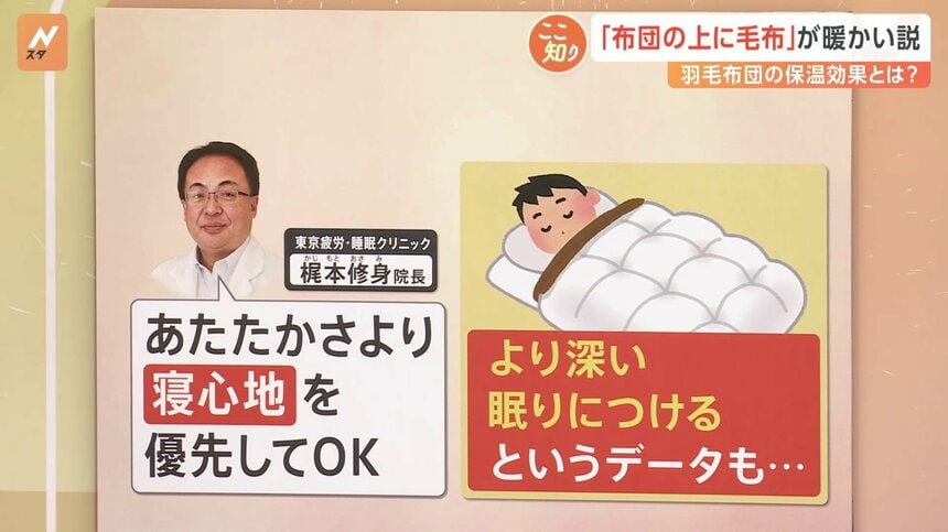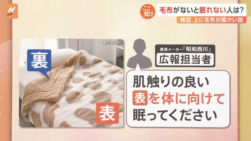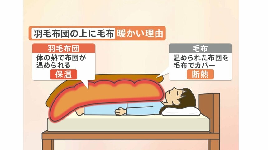 引用元: ・【検証】「布団の上に毛布」が暖かい説 毛布は布団の「上」か「下」か 毛布の正しい使い方 [793051416]