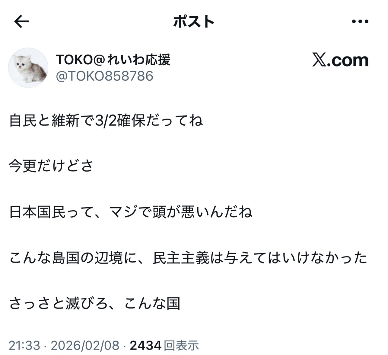 1: それでも動く名無し 2026/02/12(木) 21:34:42.08 ID:q1tW5aL50 どうして?😭 https://i.imgur.com/SJZi1Ha.jpeg 引用元: ・【悲報】高市早苗の「いじ […]