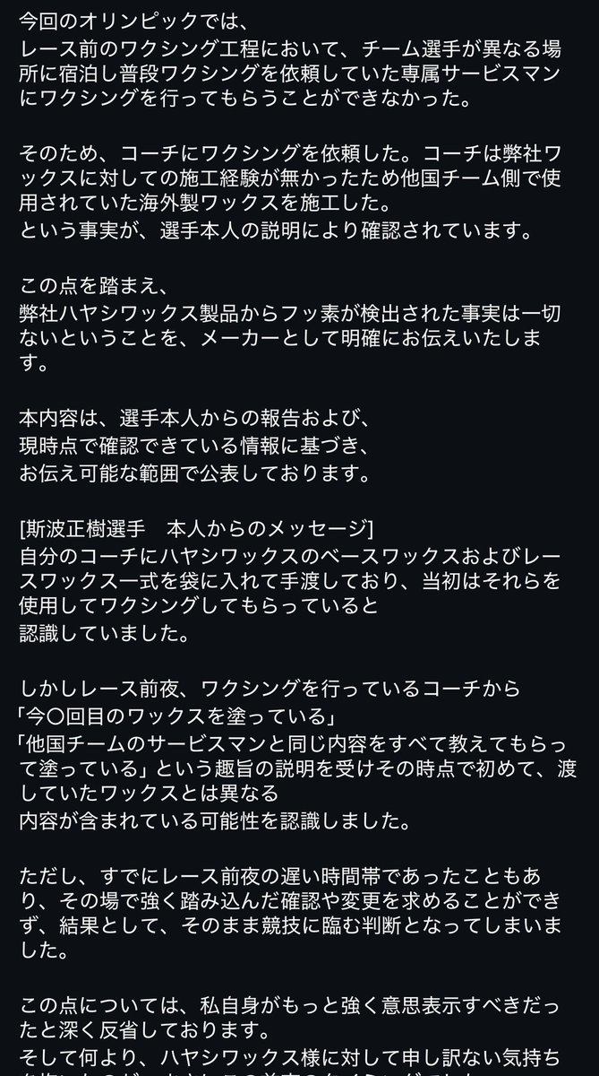 引用元: ・【メーカー激怒表明😡】ミラノ五輪スノーボード選手コーチ独断施工の違反ワックスで失格 [776365898]