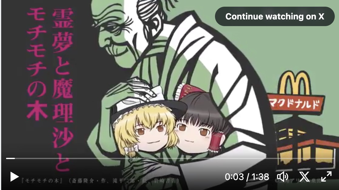 引用元: ・マクドナルド、「霊夢と魔理沙とモチモチの木」“異色”のコラボ動画公開にネット困惑「コラボがカオスすぎるww」 [muffin★]