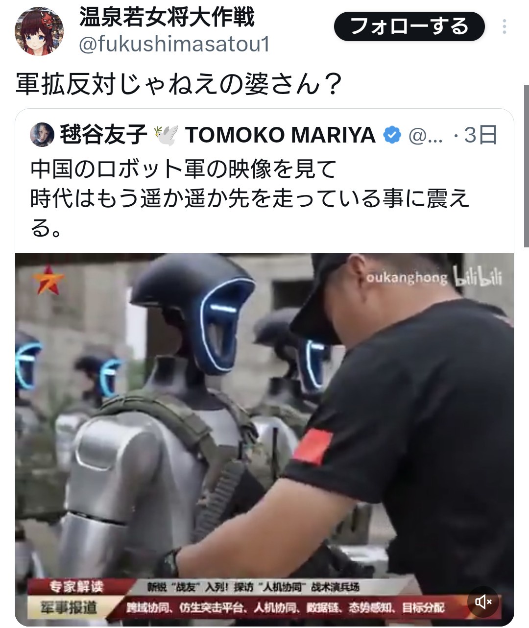 引用元: ・戦争反対のパさん「中国のロボット軍はもう遥か遥か先を走っている事に震える」 [662593167]