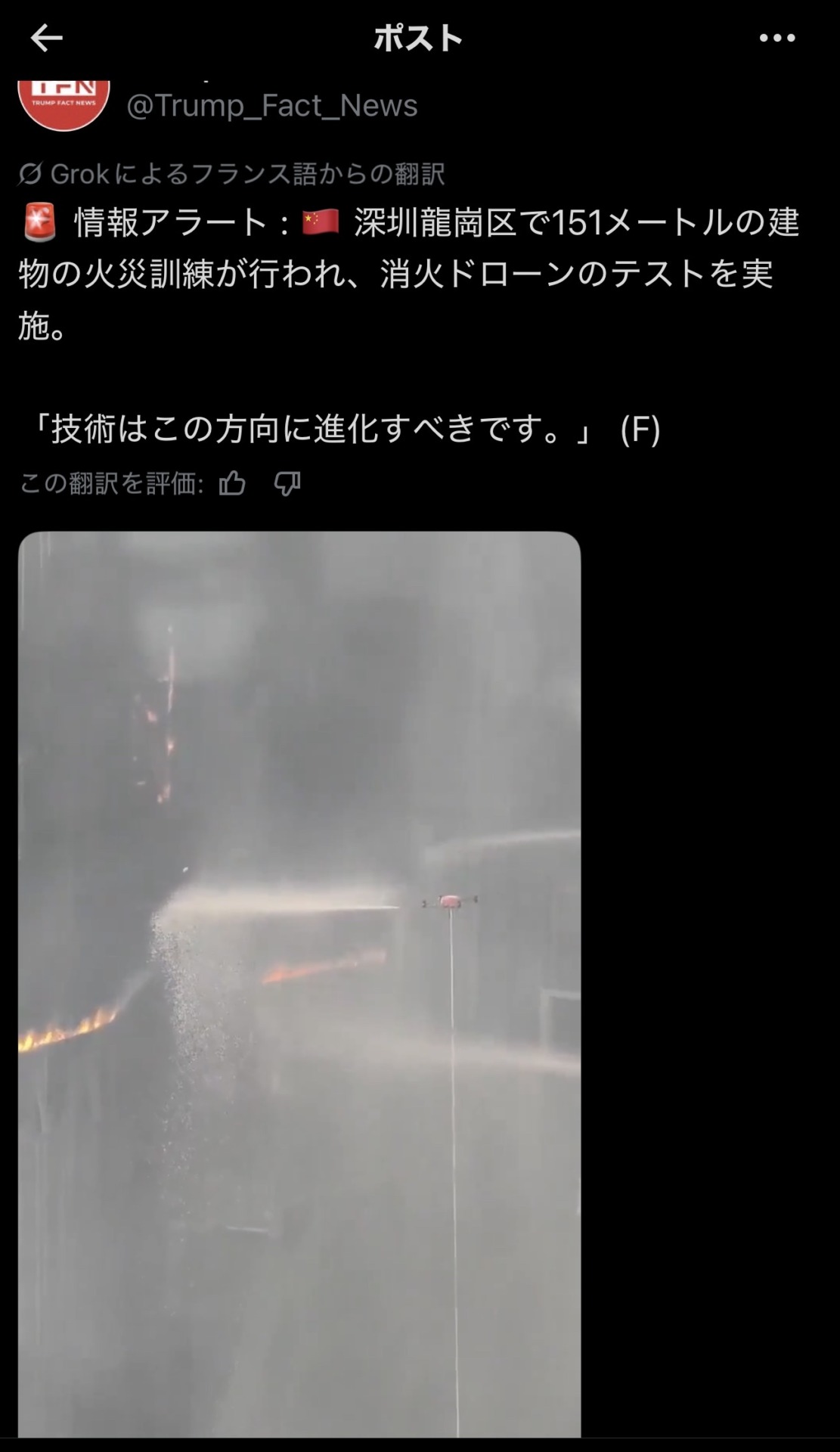 引用元: ・フランス人、中国の超高層ビル火災用ドローンの消火訓練映像を見て感激。 「さすが中国すごい!」 [668024367]