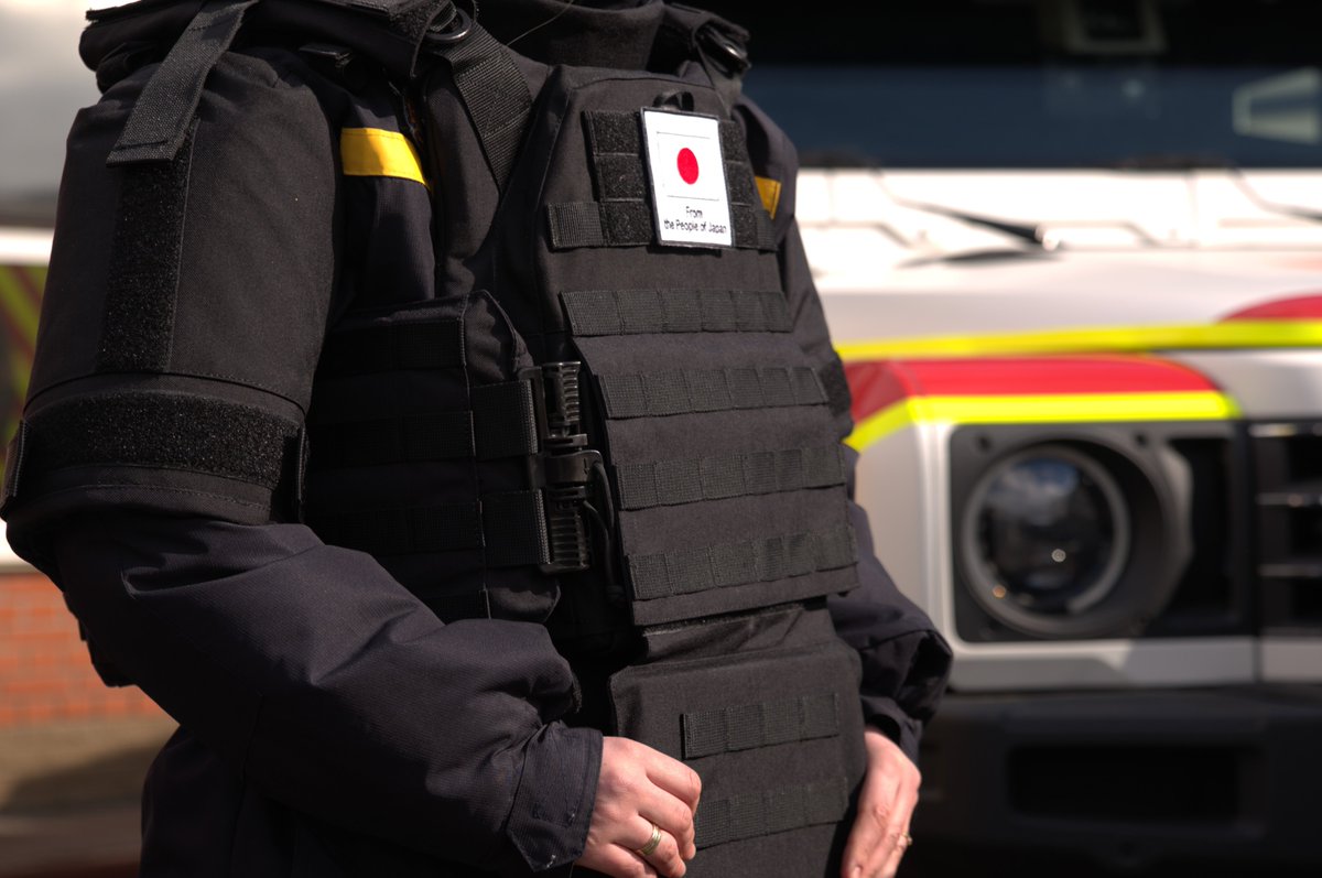 ウクライナでは国土の約2割に地雷や不発弾が残っている可能性がある。女性職員が除去作業に当たる際、従来の男女兼用の防護服は体格に合わず、負担となっていた。供与した防護服は、内部のプレートが女性向けに改良されている。