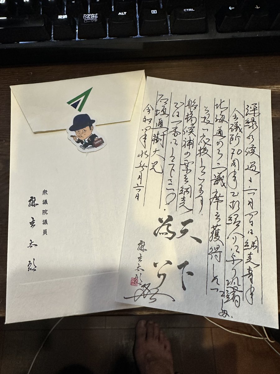 1: どどん ★ 2025/10/08(水) 16:16:03.71 ID:pZ57TFW79 10月7日、自民党の北海道網走市議会議員・石垣直樹氏が自身のXを更新。同党に所属する麻生太郎氏から手紙をもらったと報告した […]